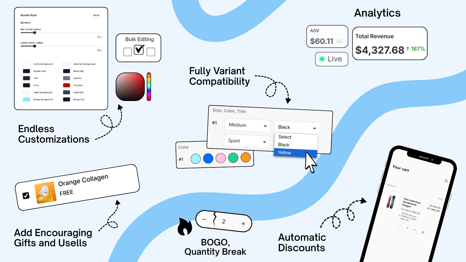 Boost your AOV effortlessly by bundling products together, making every sale an opportunity to upsell and expand